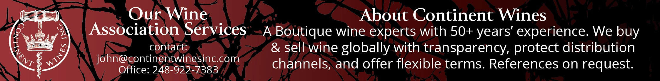 Professional and discreet wine buyers. Terms 0-30 days. No current distribution disruption.
